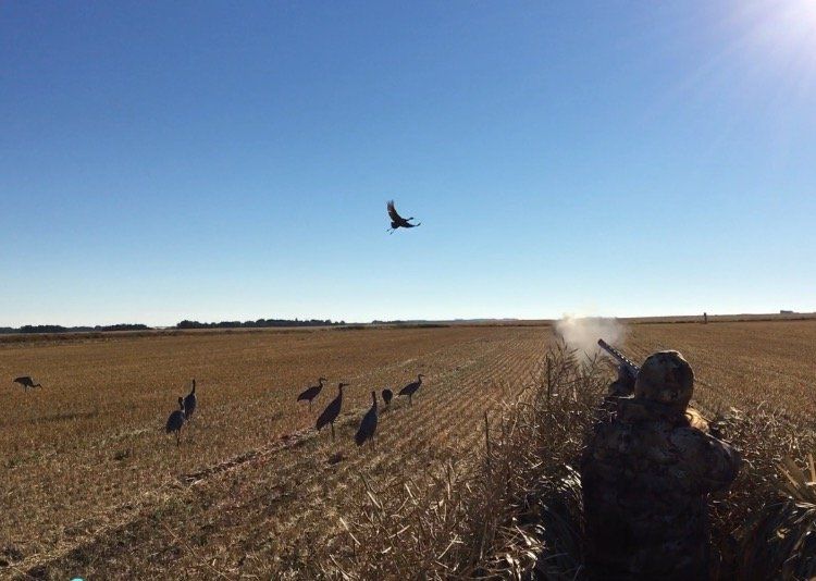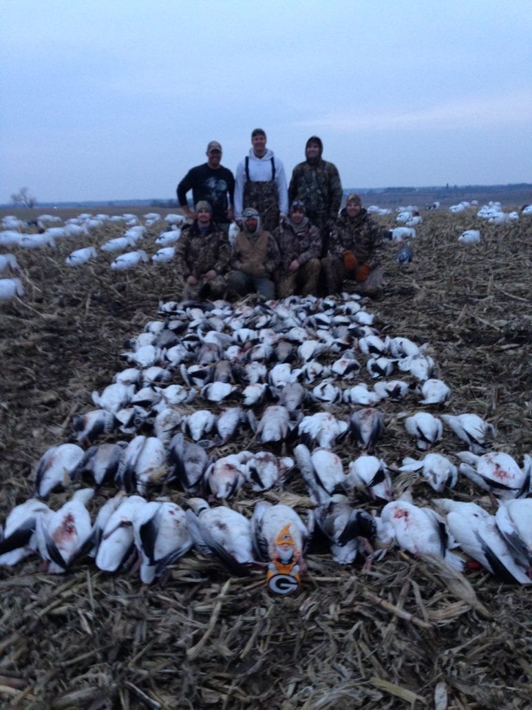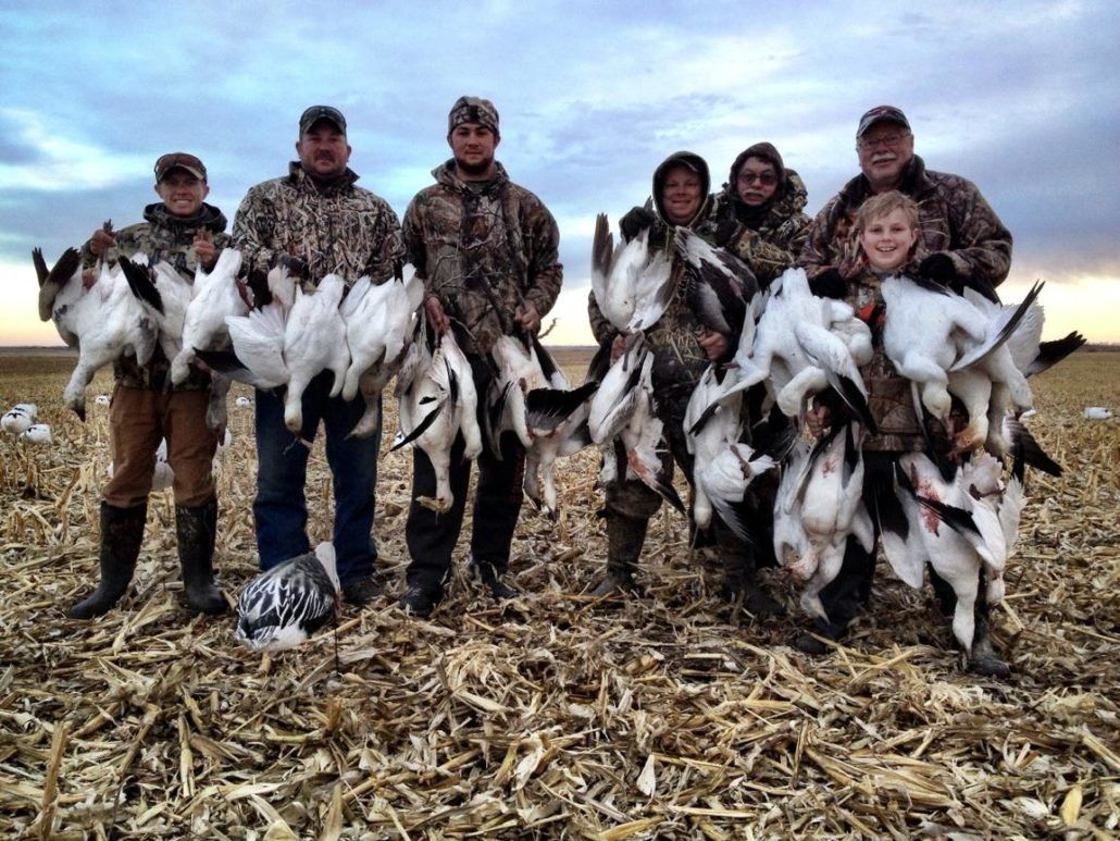 Just picture yourself watching the sunrise, over a dew covered wheat field, as small lines of geese begin to appear in the distance. As they V up in formation and start to approach the decoys, you will begin to hear their calls and very soon, the buzzing of the air beneath their wings! Your heart will begin to race, as they set their wings to glide into the hole, as the first geese in the flock land within a few feet of our blinds! Your guide will then call the shot. As you rise out of your blind, you will find yourself looking down the barrel at a huge Canada Goose and for that instant, the whole world seems to stand still, as you take aim! If you would like to write the end of this story, we have the trip for you!